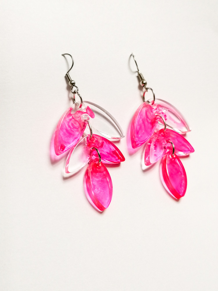Graceful and eye-catching, our Pink and Transparent Resin Leaf-Shaped Earrings feature a stunning 3-tier design that flows with every move. The soft pink tones blend beautifully with clear resin, creating a light and airy look inspired by nature’s delicate beauty. Whether you’re dressing up for a garden party or adding a whimsical touch to your everyday outfit, these earrings bring elegance and charm to any occasion. Lightweight, feminine, and effortlessly stylish — let your style bloom!